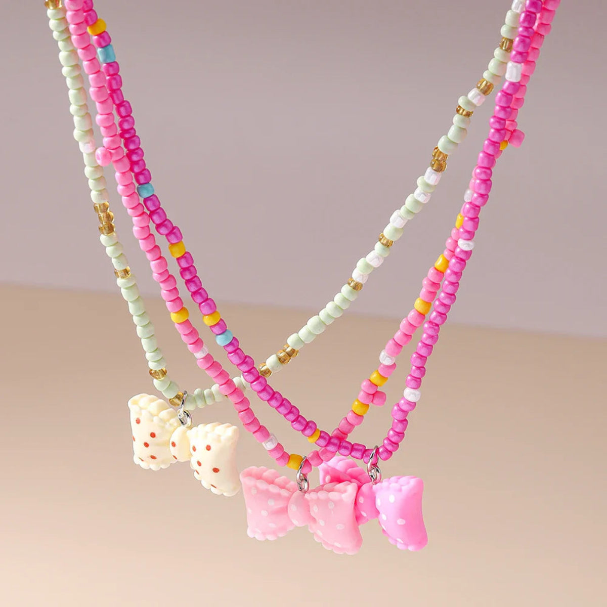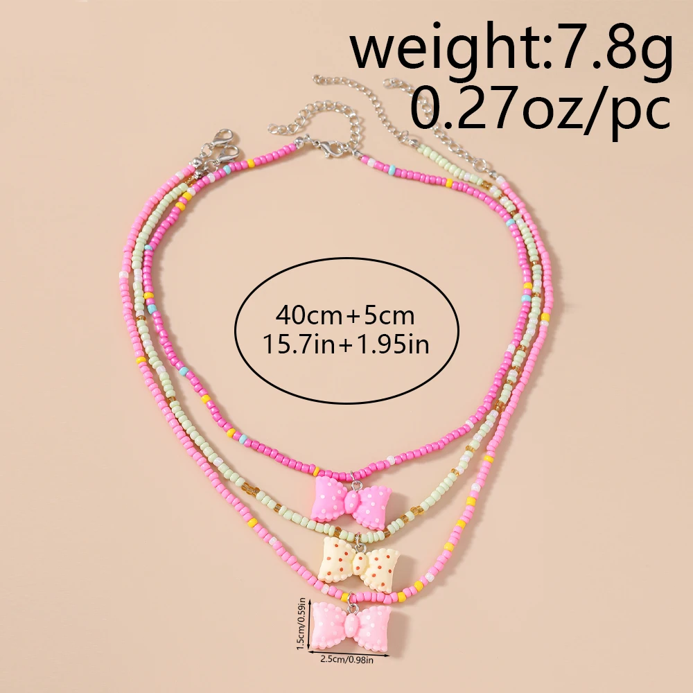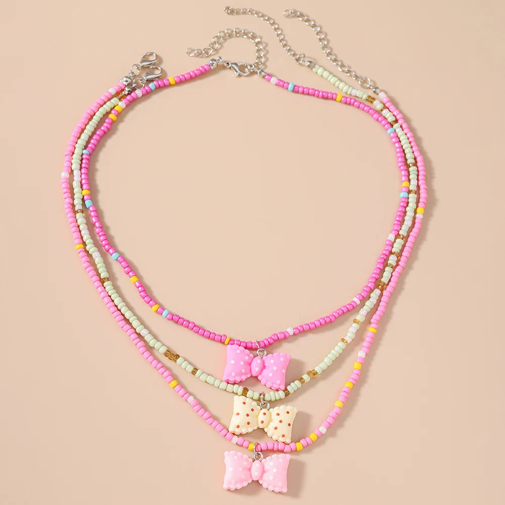 Handmade Boho 3pc Necklace Set with Bow Pendant, Summer Beach Jewelry Gift for Women & Girls